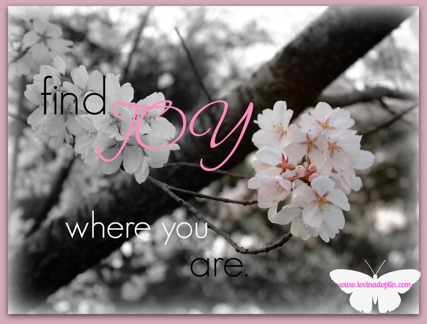 Yes, I pray about it, but some days that torrent is suffocating, and I can’t find my way up and out. On the days when the water isn’t so murky, I focus on my little family and finding joy where I am. This post I will link to also mentions joy.