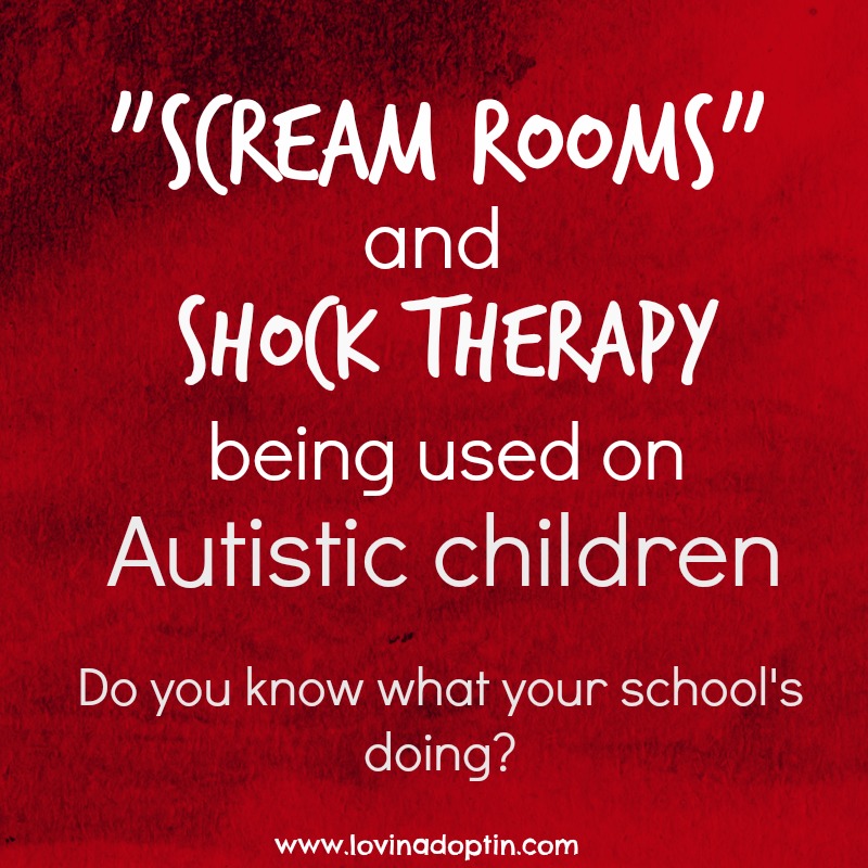 In response to these atrocities being used on people with special needs, some say, “But it worked for my child,” “It worked for me,” or “I work with the special needs population and I’ve seen it make a difference.” I say for everyone it did help, it harmed several more. The question should be asked, “Would you do this with a typical child [or person]?” This question was brought to my attention by Heidi Lostracco on Speak for Yourself. I think the answer in these cases, with both “scream rooms” and shock therapy, would be a resounding, “NO!” And if it’s not okay for a typical child, it’s not okay for a child with special needs of any kind.