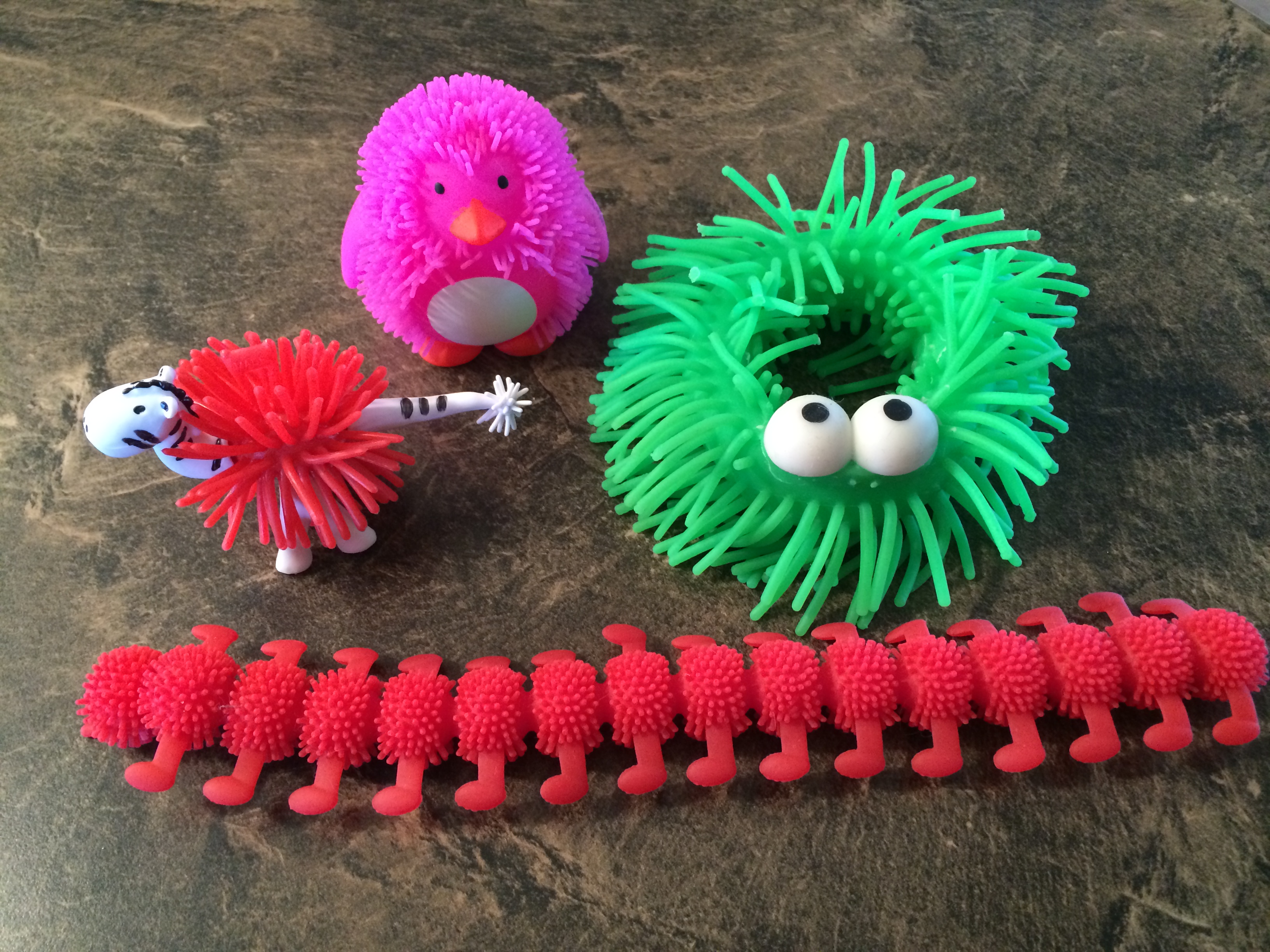 what we wanted her to get Jeremiah for his birthday one year. We asked her to get whatever sensory toys she felt the kiddos she worked with liked the most. She bought this wrist band and Chewy Skool Kid Chewable Necklace. I like the Chewable Necklace pictured because it has a breakaway hook so your child doesn’t strangle themselves. Jolene also introduced us to the awesome slinkies I mentioned in The Best Sensory Toys (Part 1). The ones pictured here haven’t been a hit with Jeremiah, but I think he’ll use them in the